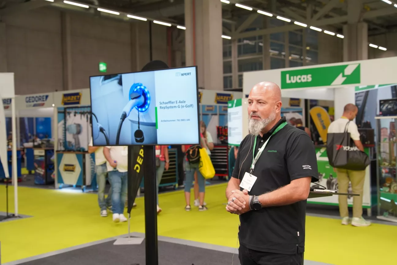 In una delle presentazioni tecniche molto seguite durante SAS 2024, spiega ai visitatori interessati i dettagli sugli e-axle e come possono essere riparati facilmente anche dalle officine indipendenti. “Un asse elettrico non è altro che il cuore della trasmissione. È estremamente efficiente - in uno spazio minimo”, afferma Strub. Tuttavia, un motore elettrico genera anche calore, motivo per cui questo tipo di trasmissione è associato alla gestione termica. Tuttavia, l'opinione prevalente tra i clienti finali è che un motore elettrico funzioni per sempre. “Ma tutto ciò che è esposto a coppie e carichi si usura”, afferma il tecnico Schaeffler. “Di solito inizia con fischi e ronzii. Sono segni che i cuscinetti, che devono gestire un'enorme quantità di potenza, sono influenzati dalle vibrazioni o da una lubrificazione insufficiente”.