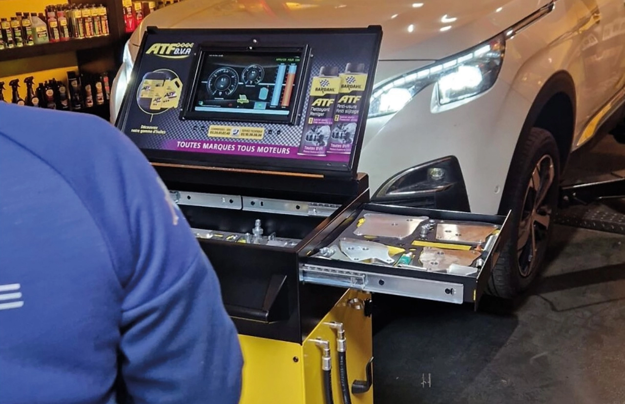 Es dauert weniger als 20 Minuten, um sich davon zu überzeugen, dass die Bardahl-Automatikgetriebe-Entleerungs- und Spülstation nicht nur effizient, sondern auch clever ist. Ihre Stärken liegen in der einfachen Bedienung und in ihrer Funktionalität. Sie kann alle Arten von Automatikgetrieben, einschliesslich der modernsten elektronisch gesteuerten Getriebe, entsprechend den von den Automobilherstellern vorgegebenen Verfahren entleeren.