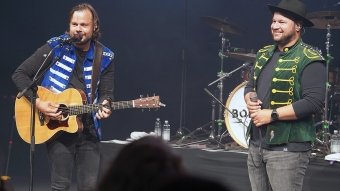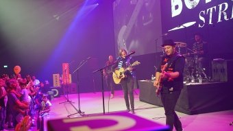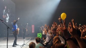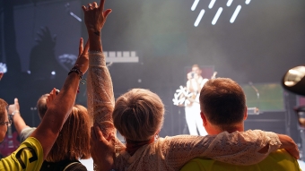 Auch die Bündner Brüder Buchli von 77 Bombay Street heizten den SAS-Besuchenden zum Abschluss des ersten SAS-Messtages nochmals ein. Sie sangen für den Geburtstag feiernden Schlagzeuger Esra mit dem Publikum zusammen «Happy Birthday», ehe sie es krachen liessen. Gleichzeitig streuten sie auch einige ruhigere Songs ein und erhielten von Derendingers Marketingchef Sébastien Moix noch Übersetzungshilfe, als das Publikum die Taschenlampenfunktion oder eben die «lampe de poche», wie Leadsänger Matt Buchli lernte, am Smartphone aktivieren sollten.