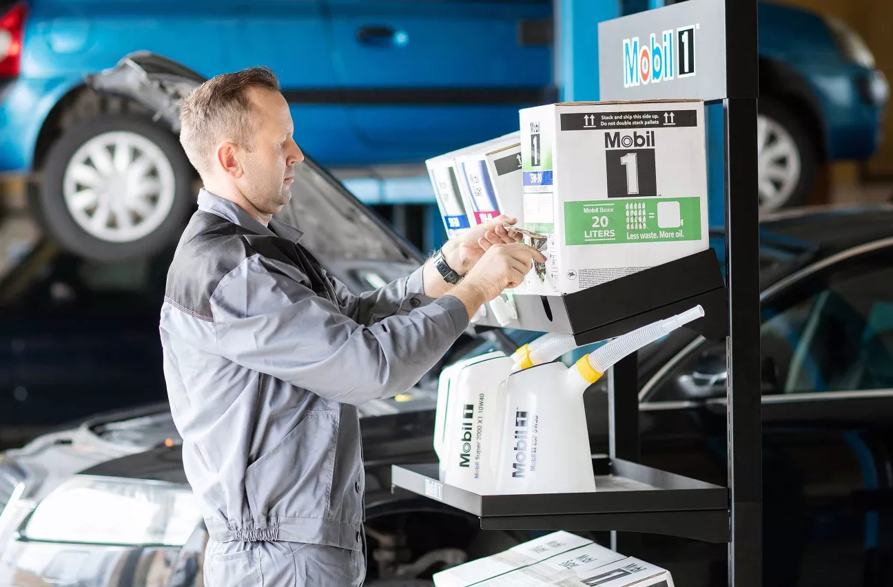 - Ausschilderungs- und Branding-Support: Die Premium-Ausschilderung von Mobil Pro ermöglicht es Werkstätten, ihre Qualität durch die weltweit führende Marke für Hochleistungs-Motorenöle zu präsentieren, damit die Kunden wissen, dass sie in vertrauenswürdigen Händen sind und ihnen die gewünschte Qualitätssicherung geboten wird.