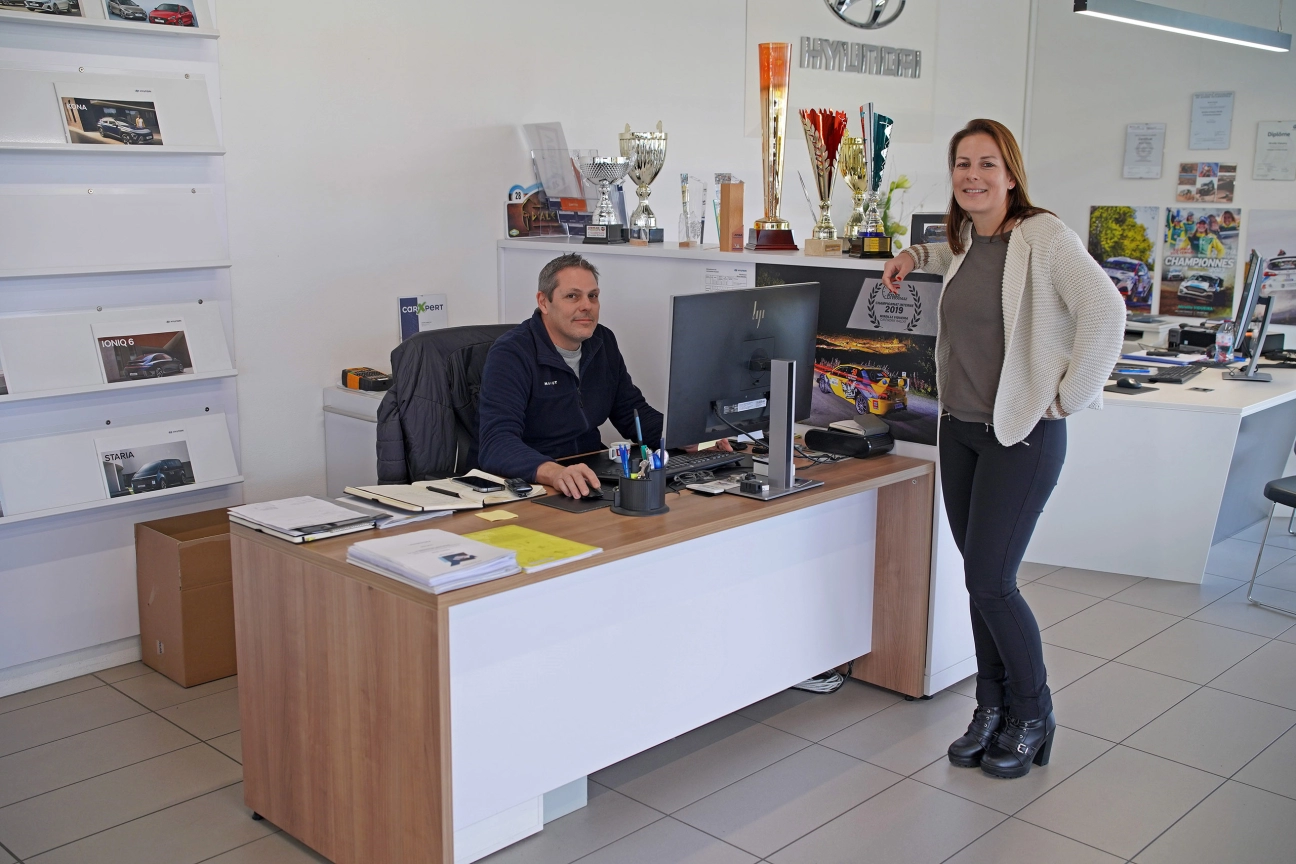 « Nous sommes les fiers représentants des marques VW et Hyundai ici dans la région du Chablais. Mais la charge de travail pour tous les audits et aussi les obligations pour conserver la plaque de concessionnaire ne cesse d'augmenter », admet sans hésiter Mireille Vidueira. Si l'on n'a pas de toilettes accessibles aux fauteuils roulants, il y a déjà une pénalité dans l'évaluation interne de la marque. Et si l'on a besoin de quelque chose, on ouvre un ticket en ligne et, avec un peu de chance, on obtient une réponse. « Le concept d'atelier de Derendinger est différent », explique Mireille Vidueira. Les clients apprécient le fait que le garage Cornut les connaisse personnellement et sache quel modèle de voiture ils conduisent et quand et quoi a été réparé en dernier. De la même manière, Mireille et David Vidueira apprécient, au sein du réseau de garages indépendants de qualité de Derendinger, que l'on ne soit pas simplement un numéro en tant que garage. « Chez carXpert, tout fonctionne de manière beaucoup plus familiale, même si Derendinger est une grande entreprise. Ici, on a un interlocuteur personnel – on se connaît, cela aide énormément », explique la cheffe des ventes du garage Cornut. « Que ce soit avec une ou deux marques, les marges baissent. Il est donc extrêmement important que l'entreprise soit plus largement soutenue. Cela fonctionne très bien avec un concept multimarque supplémentaire », dit-elle, « la plupart du temps, nos clients VW et Hyundai ont de toute façon dans leur famille un deuxième véhicule d'une autre marque. Et s'ils sont satisfaits de notre service, ils peuvent désormais le faire entretenir chez nous sans problème. Et avec le logo carXpert, nous affichons clairement notre compétence multimarque ».