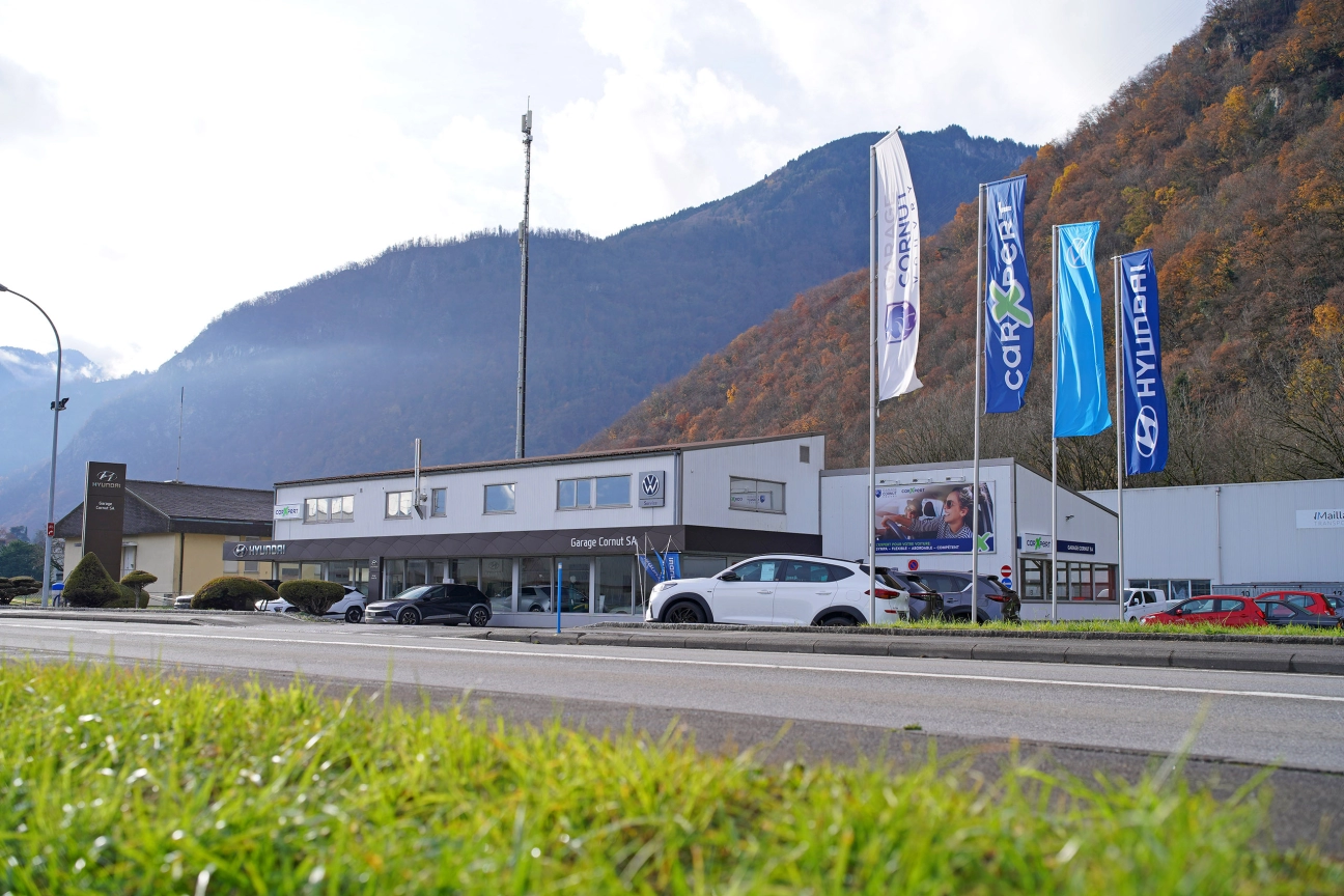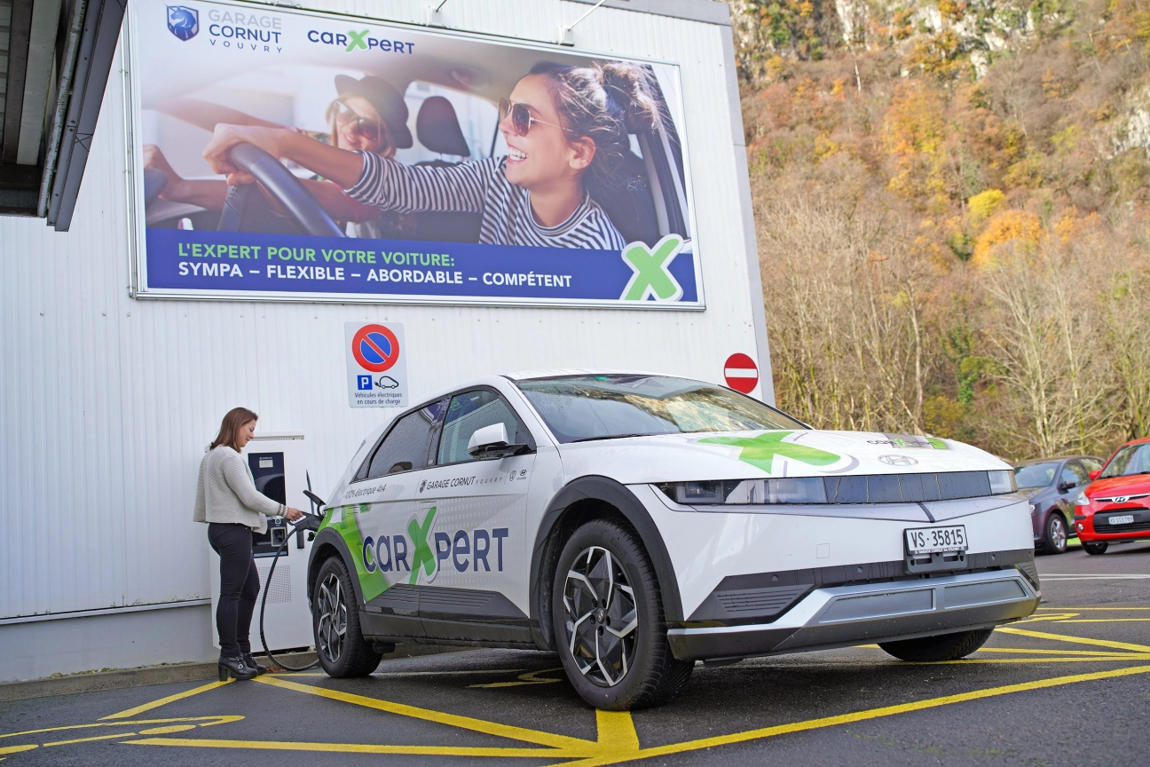 Depuis quelques mois, en plus des drapeaux de Hyundai et de VW qui flottent au vent au Garage Cornut à Vouvry, il y a aussi celui du concept d'atelier carXpert de Derendinger. Une Hyundai électrique arborant la marque montre clairement qu'ici, les véhicules de toutes marques sont entre de bonnes mains.
