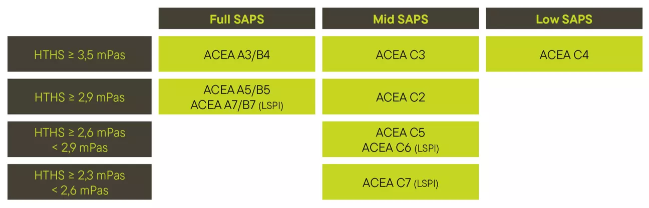ACEA C7 est une nouvelle catégorie d'huile moteur Mid-SAPS (faible teneur en cendres sulfatées, de phosphore et de soufre) à très faible viscosité HTHS (entre 2,3 et 2,6 mPa.s) en grade de viscosité SAE 0W-16. Ces lubrifiants sont conçus pour être utilisés dans les moteurs à essence et les moteurs diesel à hautes performances avec des intervalles d'entretien prolongés, où des systèmes de post-traitement avancés tels que les filtres à particules diesel (DPF) et les catalyseurs à trois voies (TWC) sont utilisés. Ces lubrifiants disposent d’un paquet d’additifs qui garantissent une protection fiable contre le pré-allumage à bas régime (LSPI), l'usure prématurée du turbocompresseur et la formation de dépôt dans le turbocompresseur.