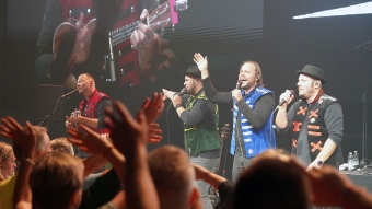Anche i fratelli Buchli dei 77 Bombay Street, originari dei Grigioni, hanno riscaldato ancora una volta i visitatori della SAS alla fine della prima giornata della fiera. Hanno cantato insieme al pubblico «Happy Birthday» per il batterista Esra, che festeggiava il suo compleanno, prima di dare il via alle danze. Hanno anche inserito alcune canzoni più tranquille e hanno ricevuto aiuto dal responsabile marketing di Derendinger, Sébastien Moix, per tradurre quando il pubblico ha dovuto attivare la funzione torcia o «lampe de poche», come ha imparato il cantante Matt Buchli, sui propri smartphone.