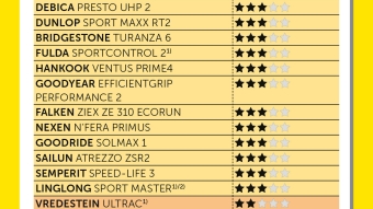 Lo pneumatico Kumho Ecsta HS52, invece, ottiene più o meno gli stessi risultati del Michelin per quanto riguarda la sicurezza e del Continental per il bilancio ambientale. Va sottolineato, tuttavia, che lo pneumatico Michelin è l’unico del gruppo esaminato che si distingue per entrambi i criteri e quindi rientra nella classe di prodotti molto equilibrati. Per quanto riguarda il bilancio ambientale, a causa del loro peso relativamente elevato il Continental e il Kumho non vanno oltre un risultato soddisfacente. Tutti e tre, però, nel test di usura offrono un chilometraggio stimato superiore alla media e un’abrasione ridotta (o addirittura molto ridotta per il Michelin Primacy+).