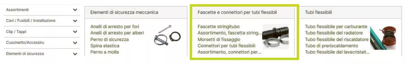 3. Viene visualizzata una panoramica della nostra vasta gamma di prodotti. Clicca sull'area desiderata: fascette stringitubo.