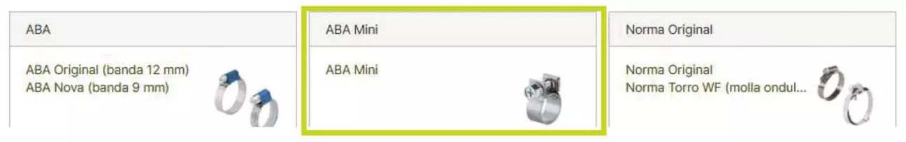 4. Scegliere il tipo di fascetta stringitubo desiderata: ABA-Mini.
